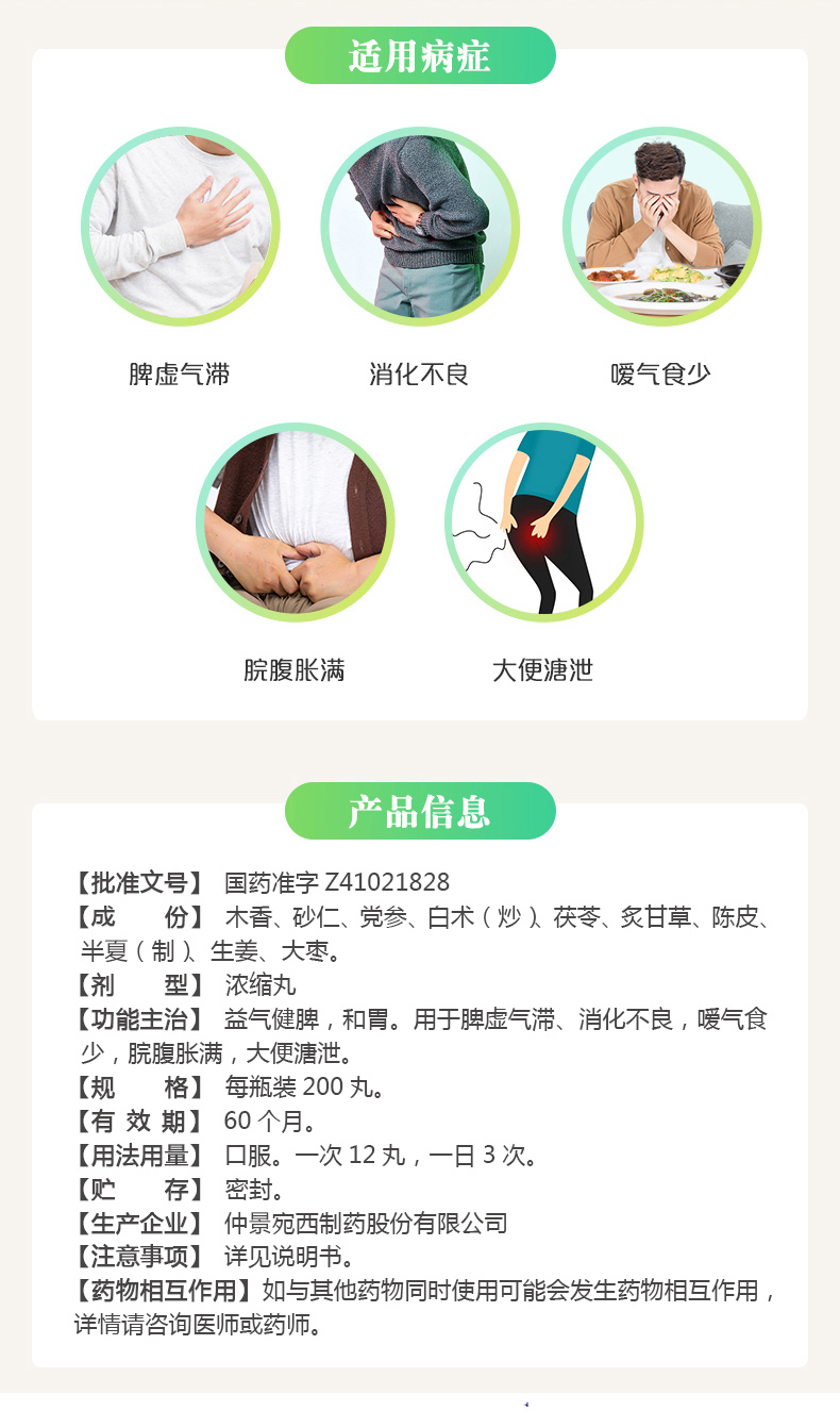 商品名称:仲景 香砂六君丸(浓缩丸) 200丸/盒