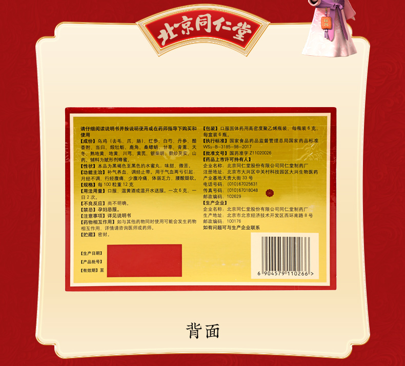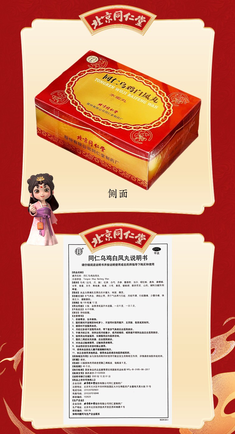 商品名称:同仁堂 同仁乌鸡白凤丸 6g*6瓶/盒