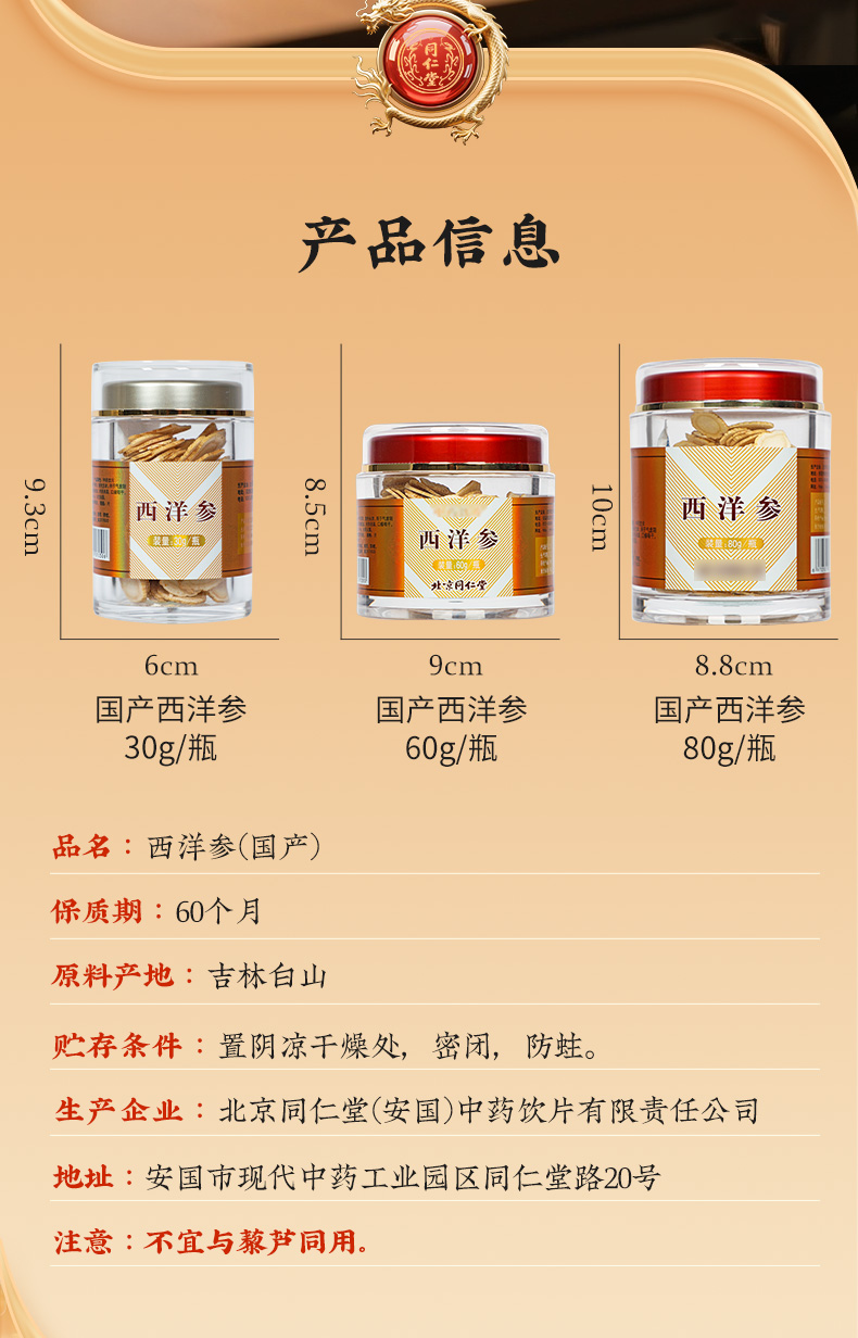 商品名称:同仁堂 西洋参 30g/瓶
